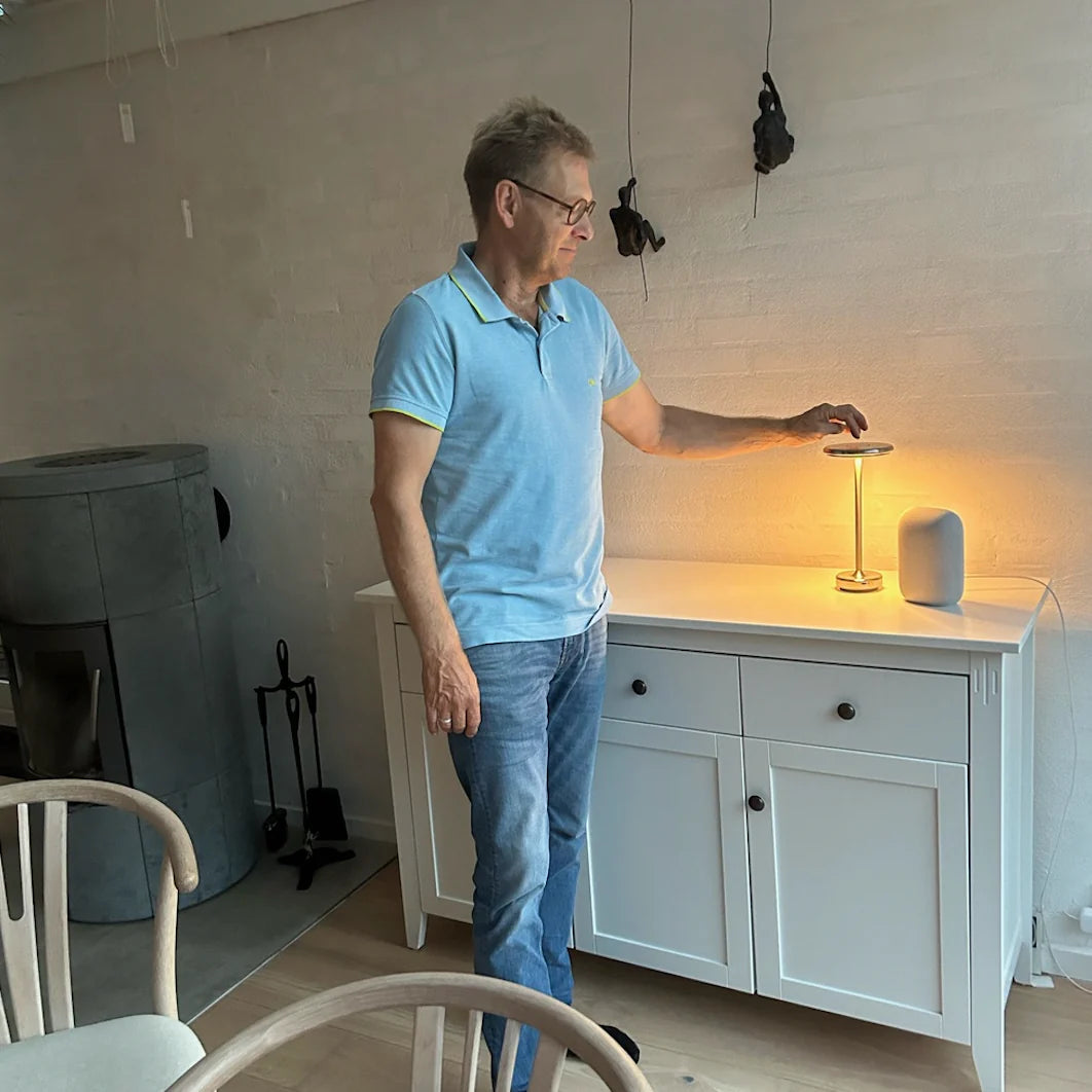 Sevimli masa lambamızı, evin her yerinde, hatta terasta bile, rahatlatıcı bir aydınlatma yaratma hedefiyle tasarladık. Kablosuz olan lamba, parlaklığını ayarlayarak her türlü ruh haline mükemmel uyum sağlıyor. İster oturma odasında, ister mutfak masasında, ister yatak odasında olsun, lamba ortama her zaman hoş ve şık bir dokunuş katıyor.